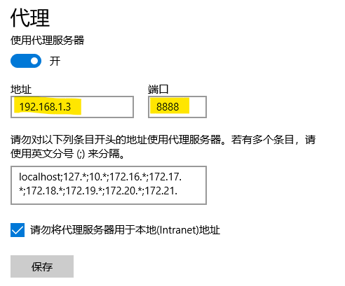 在代理设置中填入Linux的IP地址和tinyproxy监听的端口号