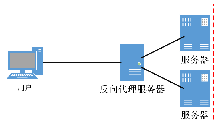 反向代理服务器位于用户与目标服务器之间,但是对于用户而言,反向代理服务器就相当于目标服务器,即用户直接访问反向代理服务器就可以获得目标服务器的资源。同时,用户不需要知道目标服务器的地址,也无须在用户端作任何设定。反向代理服务器通常可用来作为Web加速,即使用反向代理作为Web服务器的前置机来降低网络和服务器的负载,提高访问效率。它代理的是服务端。