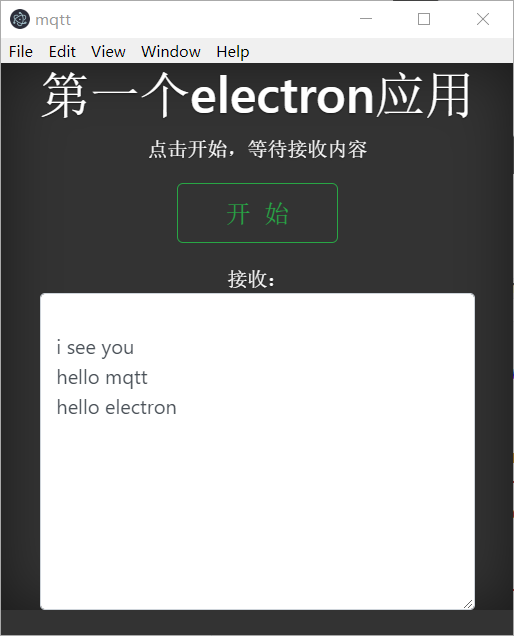 再次执行npm start就会看到上图的画面,当有topic消息来到时,文本栏会显示消息