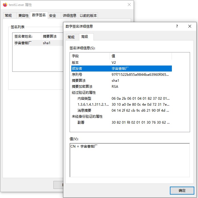 由于需要在Windows平台上给自主软件进行签名,查阅资料,主要借鉴了 makecert 制作数字证书 和 使用SignTool.exe对文件进行数字签名两篇博文,成功完成签名。